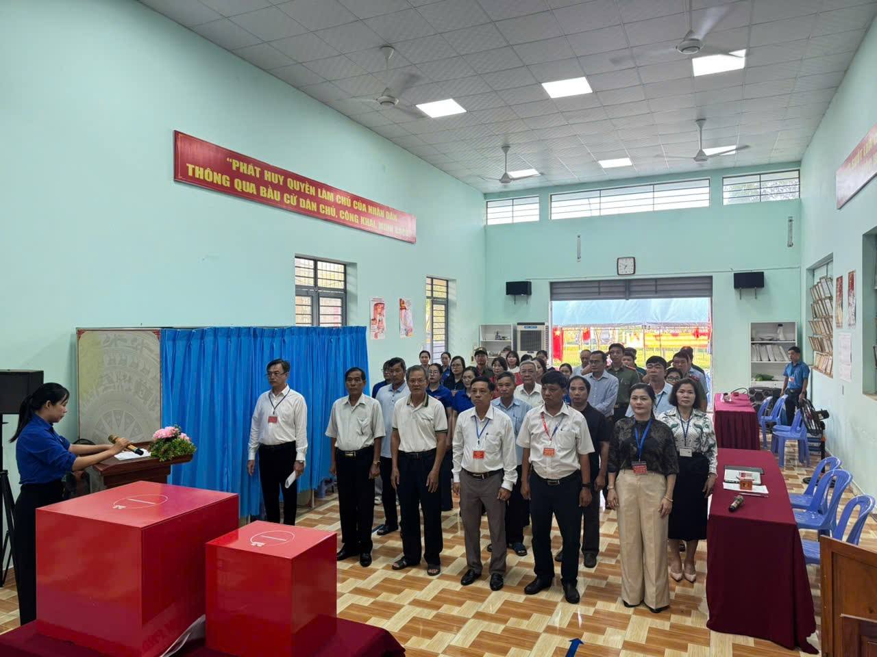 Tại các điểm bỏ phiếu, công tác chuẩn bị được thực hiện chu đáo; khu vực bầu cử được trang trí trang nghiêm với cờ, hoa, pano, khẩu hiệu; quy trình bầu cử bảo đảm dân chủ - công khai - đúng pháp luật.