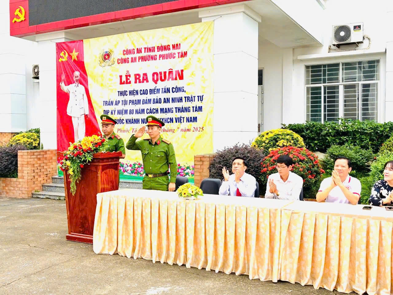 Sáng ngày 21/7/2025, đuợc sự nhất trí của Ban thường vụ Đảng ủy, Công an phường Phước Tân tổ chức Lễ ra quân tấn công trấn áp tội phạm, đảm bảo an ninh trật tự dịp lễ kỷ niệm 80 năm Cách mạng tháng Tám và Quốc khánh nước CHXHCN Việt Nam.