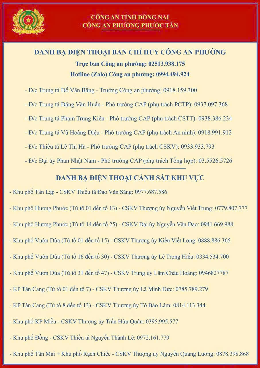 Danh bạ điện thoại công an phường Phước Tân