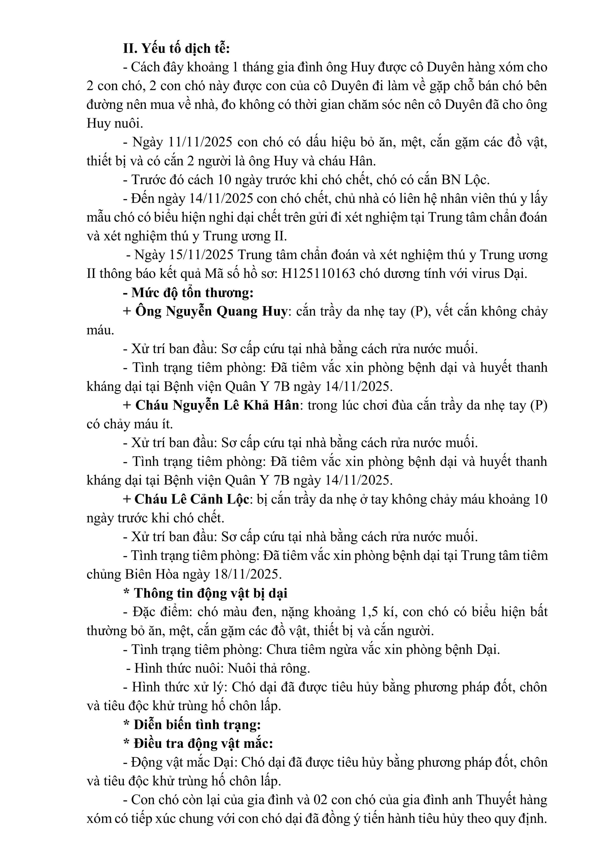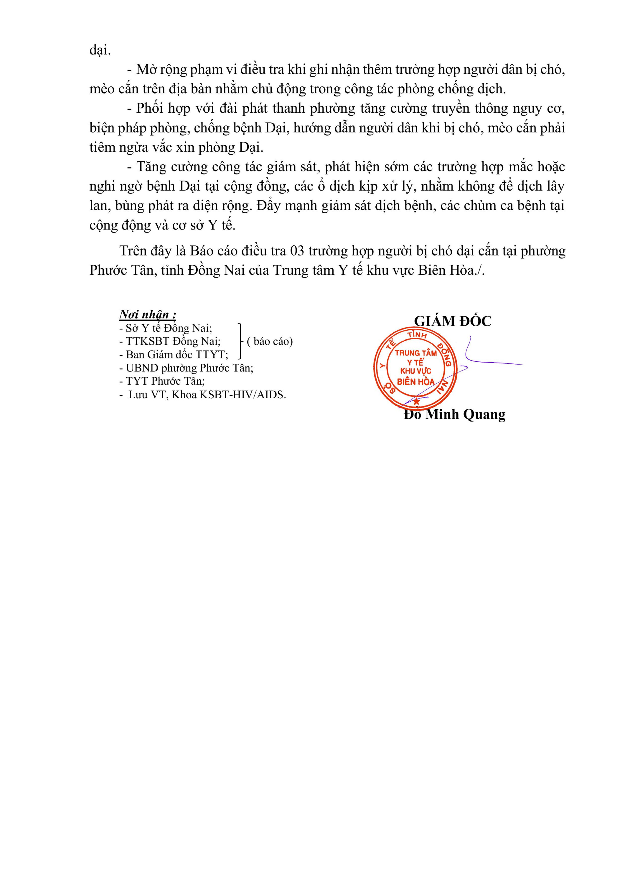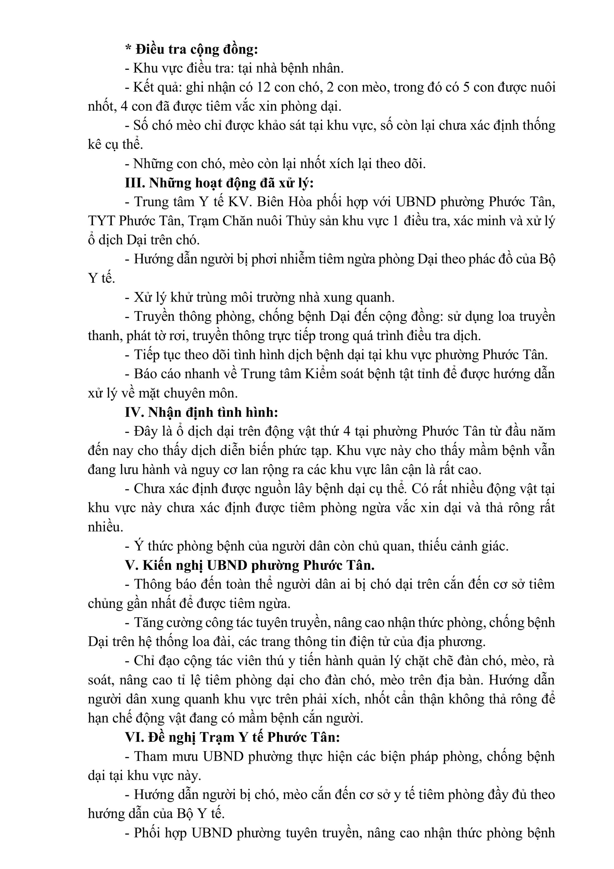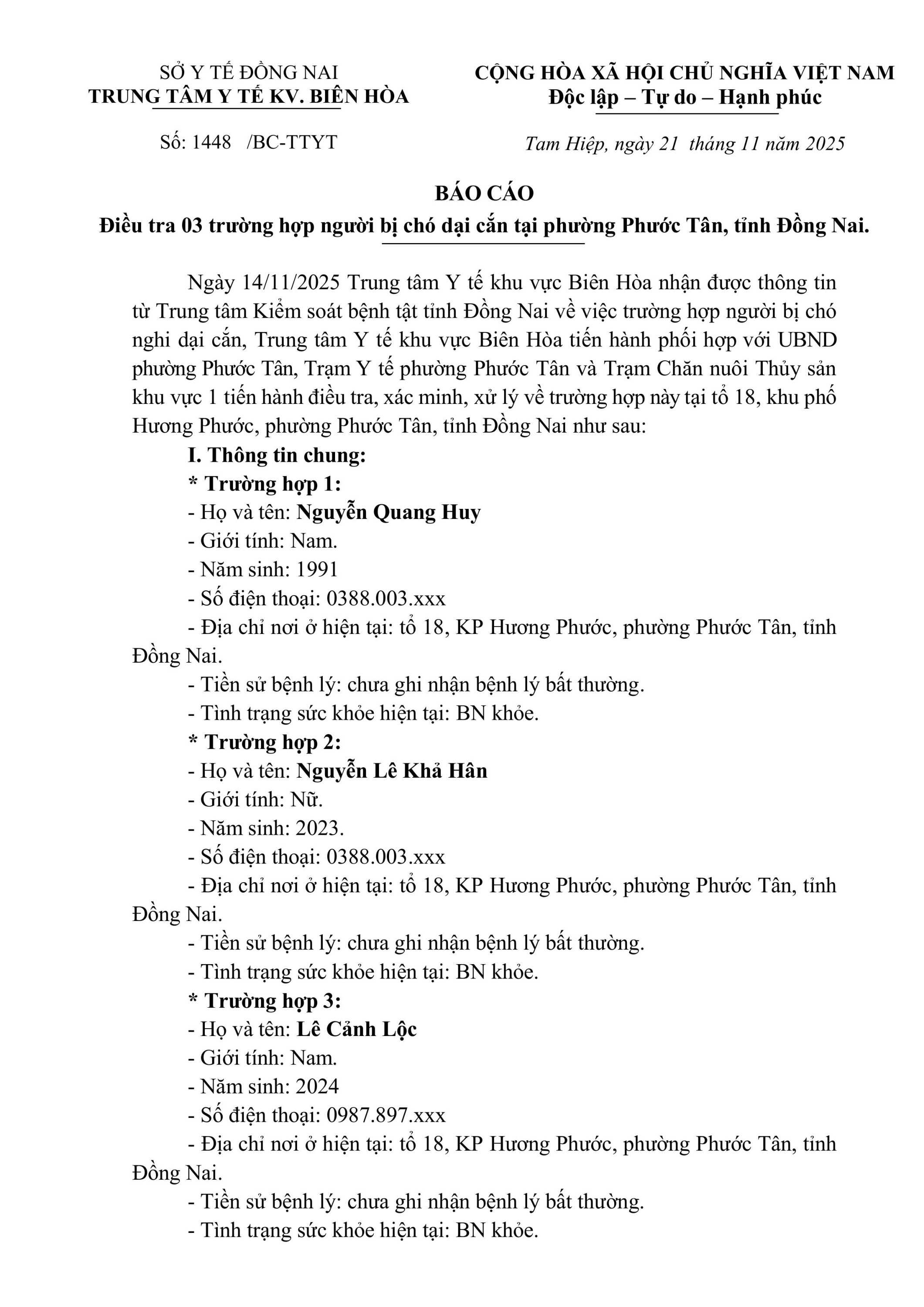 Báo cáo các trường hợp chó dại cắn tại phường Phước Tân