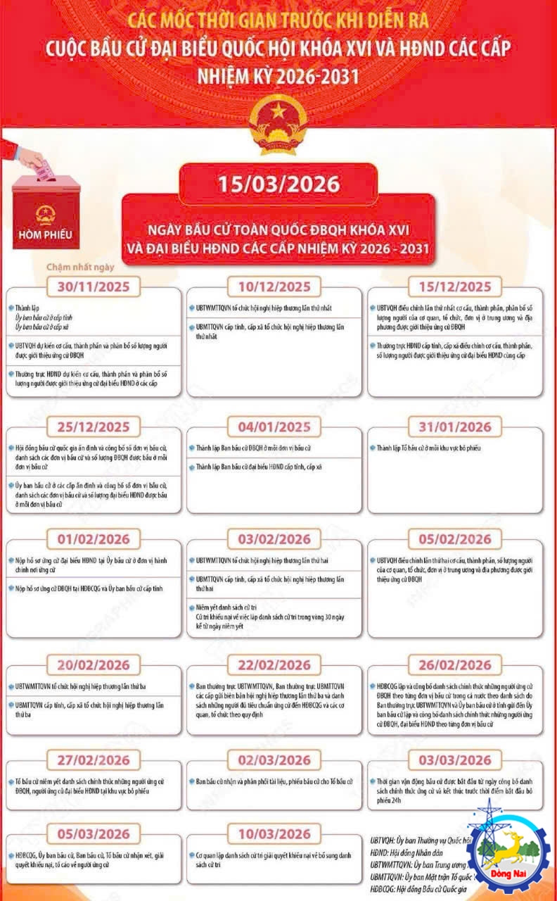 Các mốc thời gian trước khi diễn ra cuộc bầu cử Đại biểu Quốc hội khóa XVI và HĐND các cấp nhiệm kỳ 2026-2031