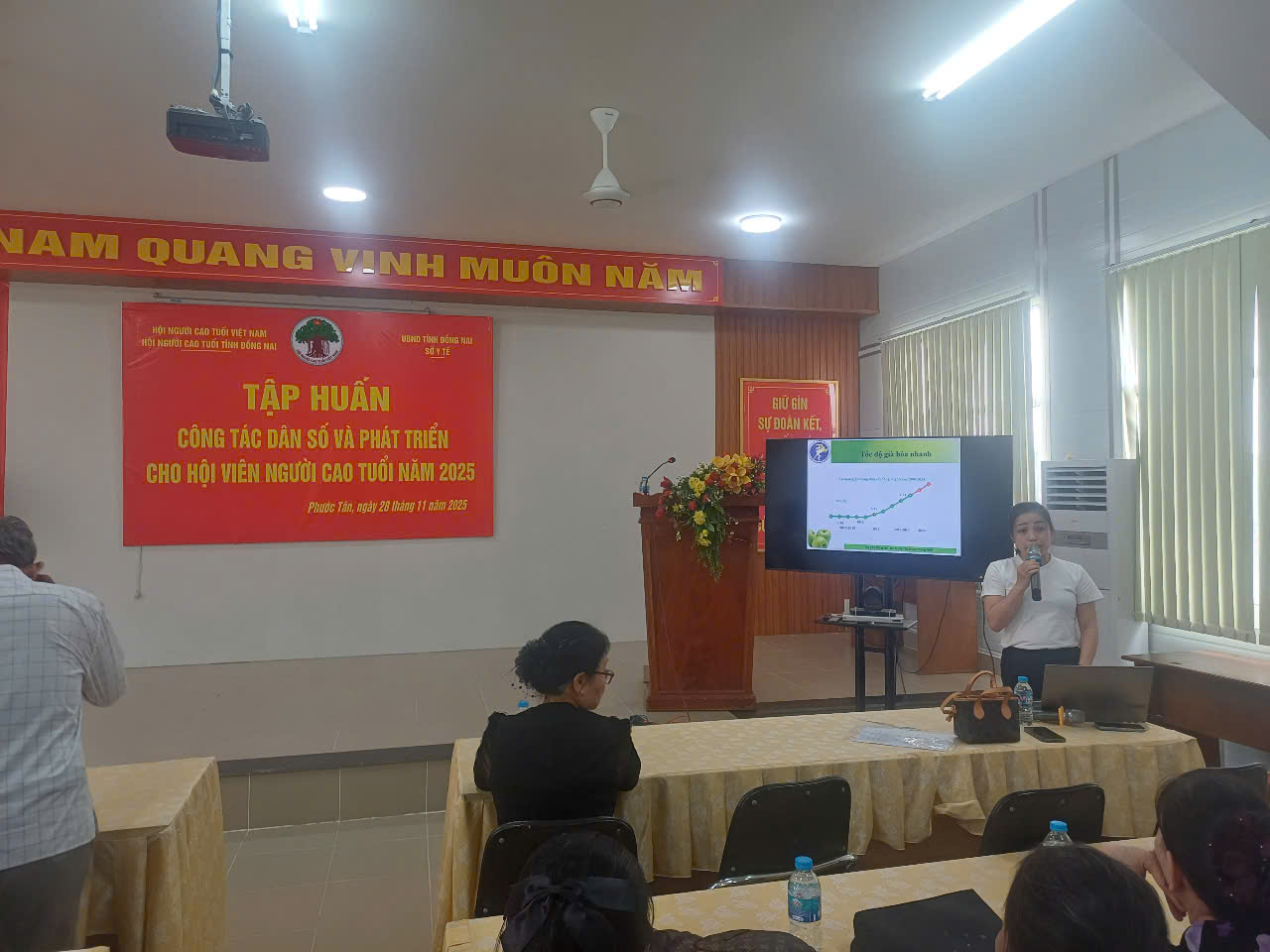 Ngày 28/11/2025, tại Hội trường UBND phường Phước Tân, Hội Người cao tuổi tỉnh phối hợp Sở Y tế tổ chức tập huấn về công tác dân số và phát triển cho 150 hội viên người cao tuổi sinh hoạt tại các chi hội trên địa bàn phường Phước Tân.